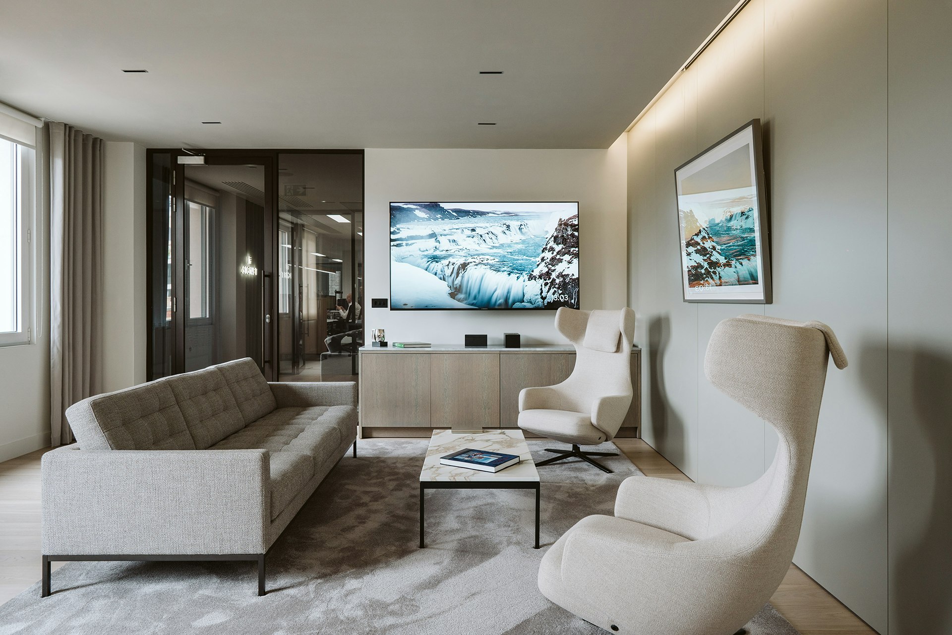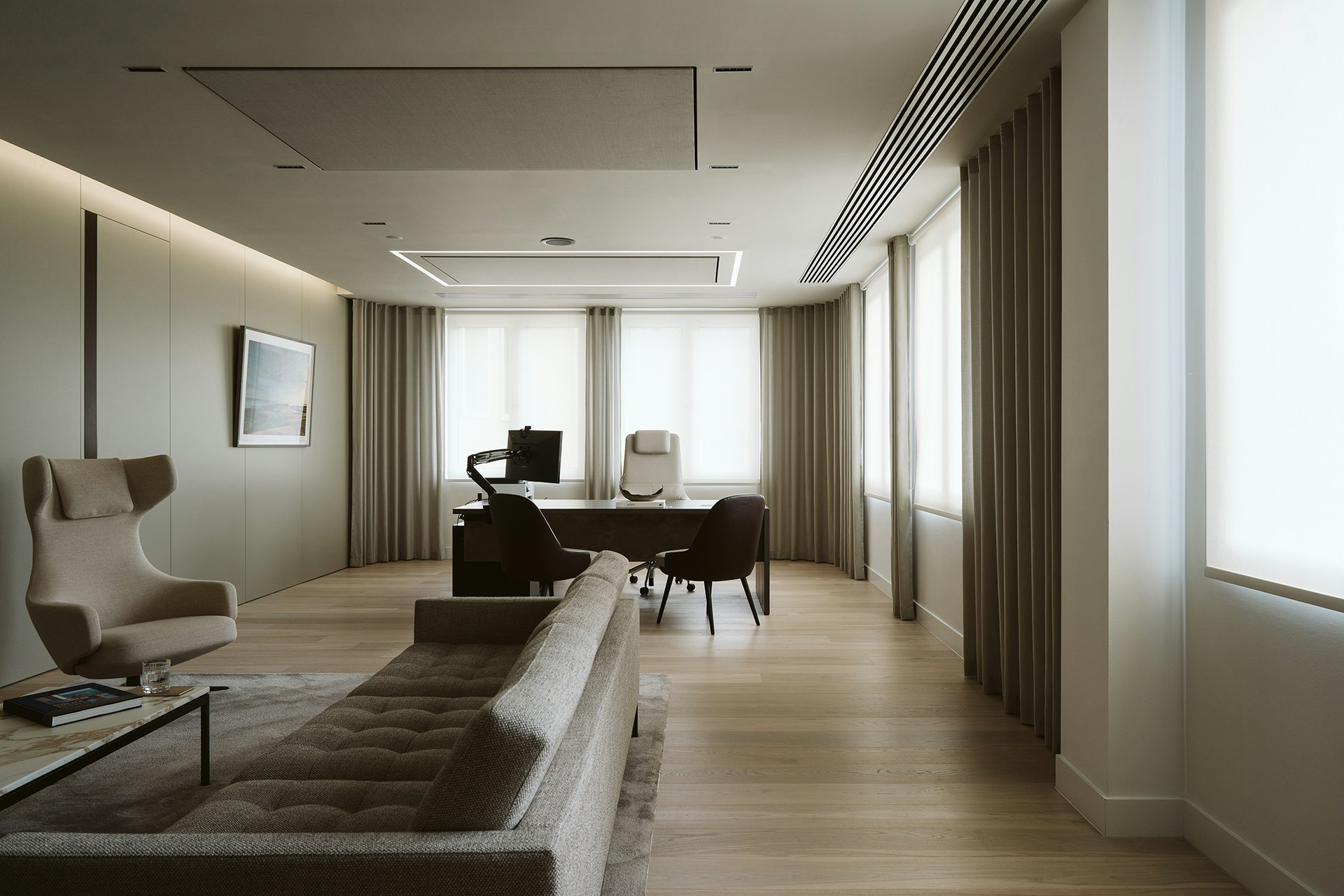 With a neutral palette, high end finishes and timeless details, Signet Capital Management’s new space resembles a high-end boutique hotel, fitting for its location in the heart of Knightsbridge.