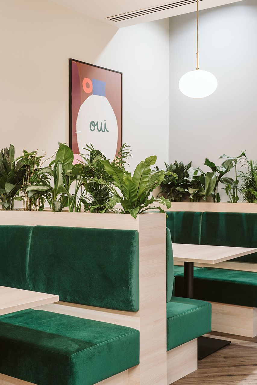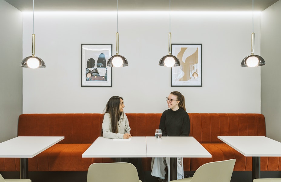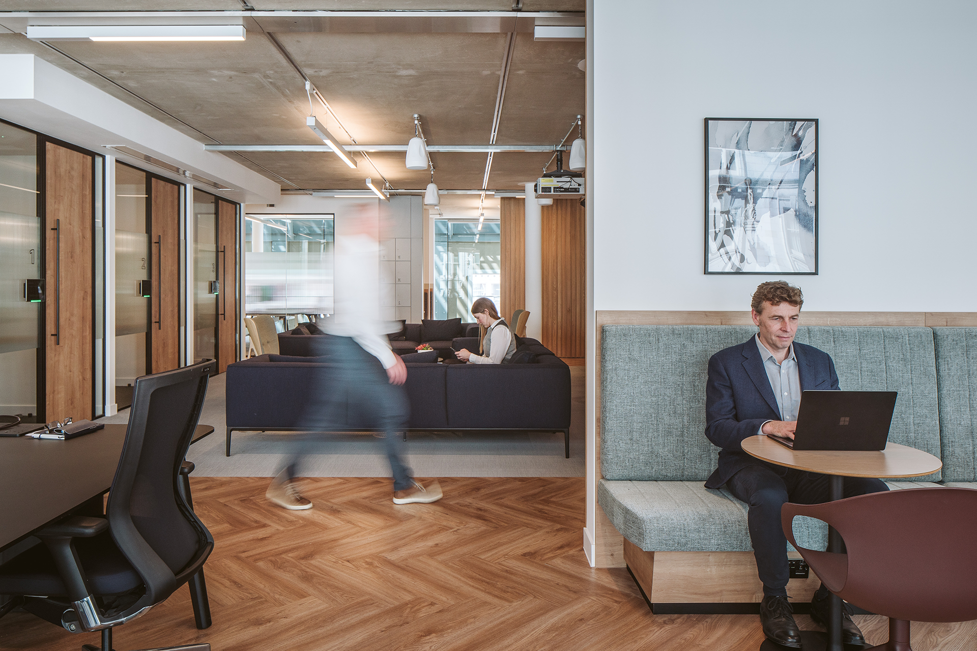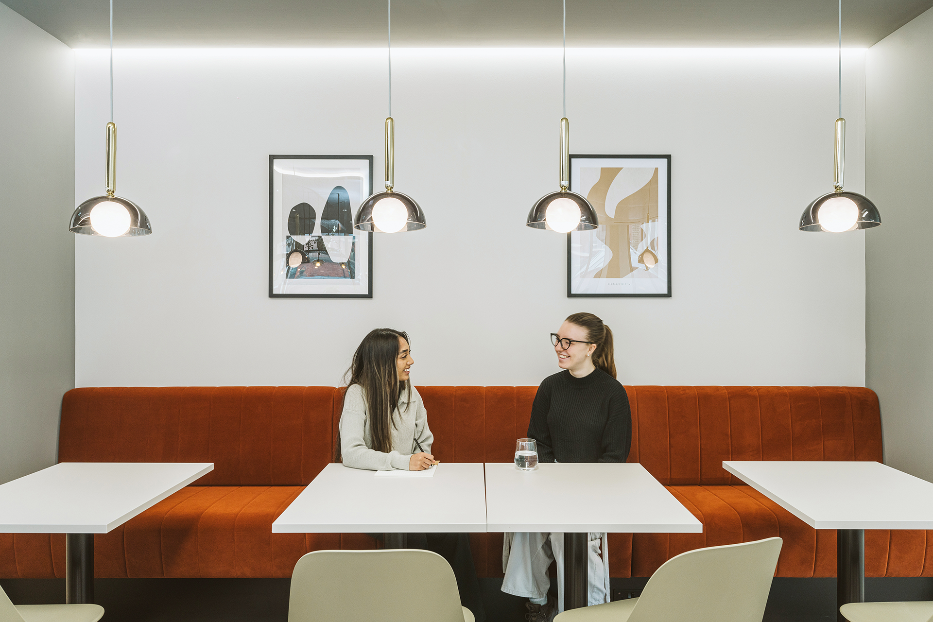 If we asked you to imagine a typical old school of**ce, we can bet you’d picture one big shared area with desks, a kitchen, and maybe a reception. Gone are those days. Workspace design needs to take into consideration different ‘zones’ that support the many different work modes, whether that be social, collaborative, ideational, focused or anything in between. For example, having a social zone where colleagues can eat and drink together is such a simple piece of workplace design that creates a social glue, humanising the work atmosphere, generating strong bonds and improving workplace happiness. Stronger relationships with team members and a happier workforce means people are more inspired to get their teeth stuck in at work.