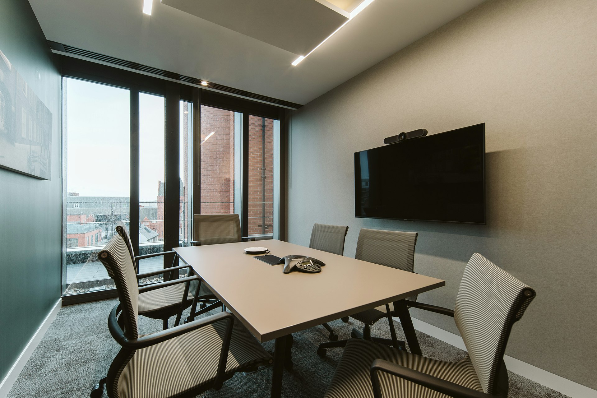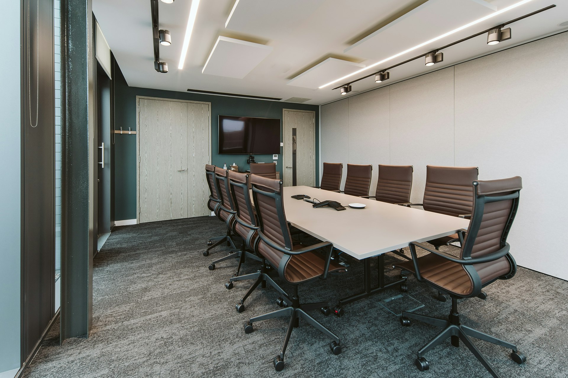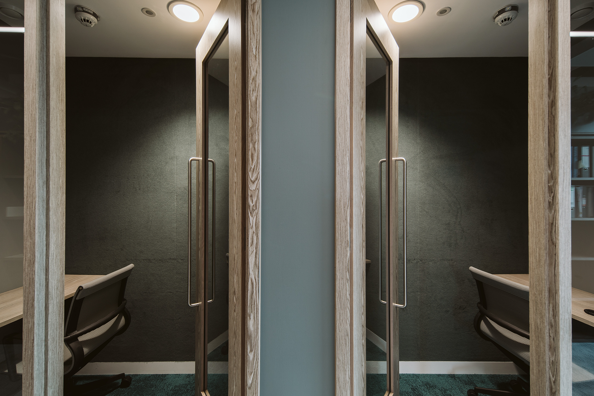 Colour, tone and texture were used to create a space that could have all the impact desired, but with the improved functions of a modern workspace. Dark blues, greens and browns add dramatic, yet contemporary elegance whilst stained wood introduces character to the space.
