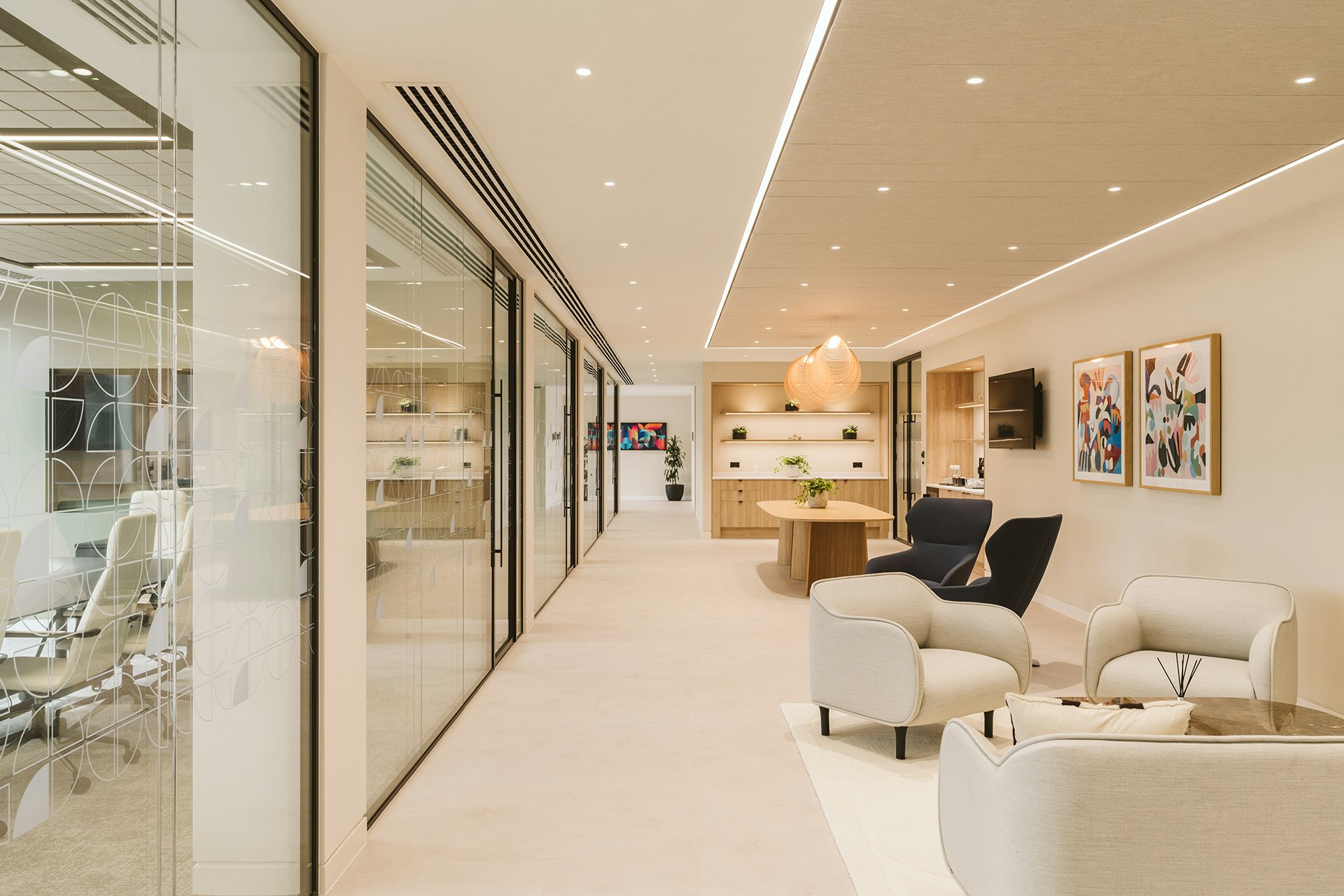 Allspring want anyone to be able to walk into their offices anywhere in the world, and still know that you are at Allspring - so when designing this scheme we wanted to stay true to this brief, whilst being sure to put a London twist on their US headquarters.