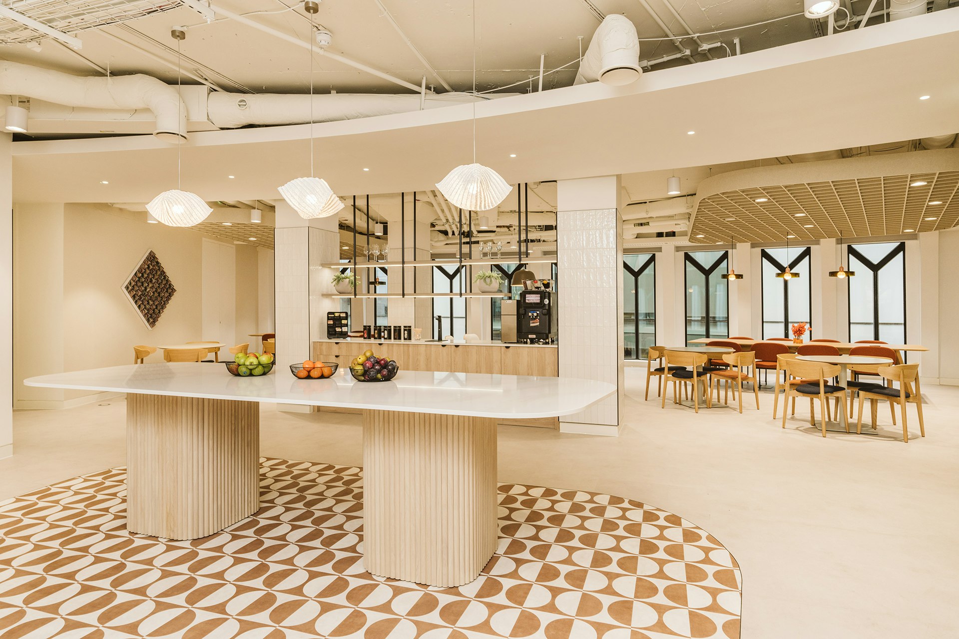 The breakout area was also a key focus for the clients – with their previous space not having one, they wanted a large communal area for their employees with the end goal of encouraging people back in to the office. To achieve this we designed the central-placed breakout area with multiple collaboration tables - a soft-seating area for informal/relaxed gatherings and smaller tables for one-on-one interactions. All of which are aimed at creating a space that will fulfil different needs and ultimately provide Allspring with a functional communal area.