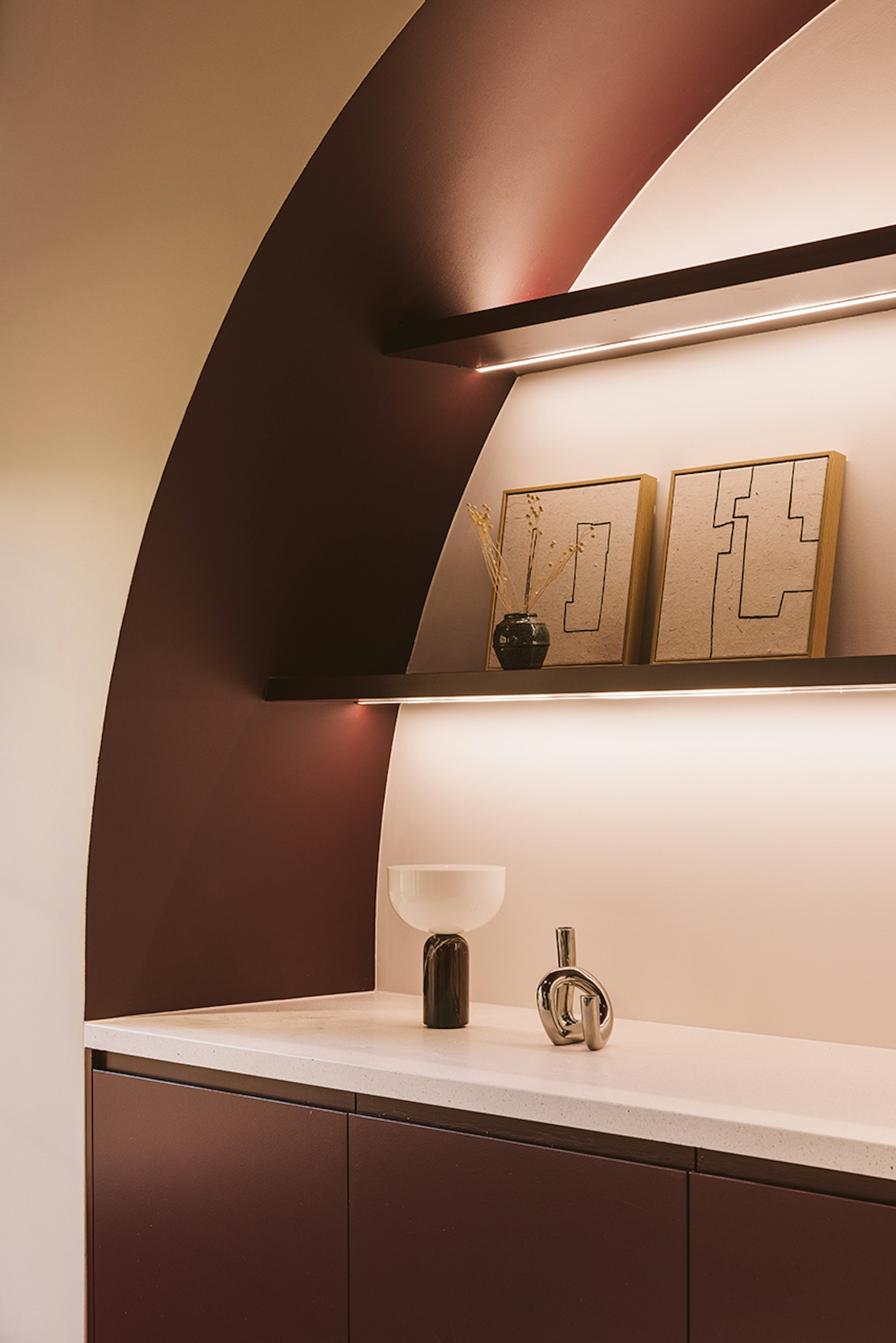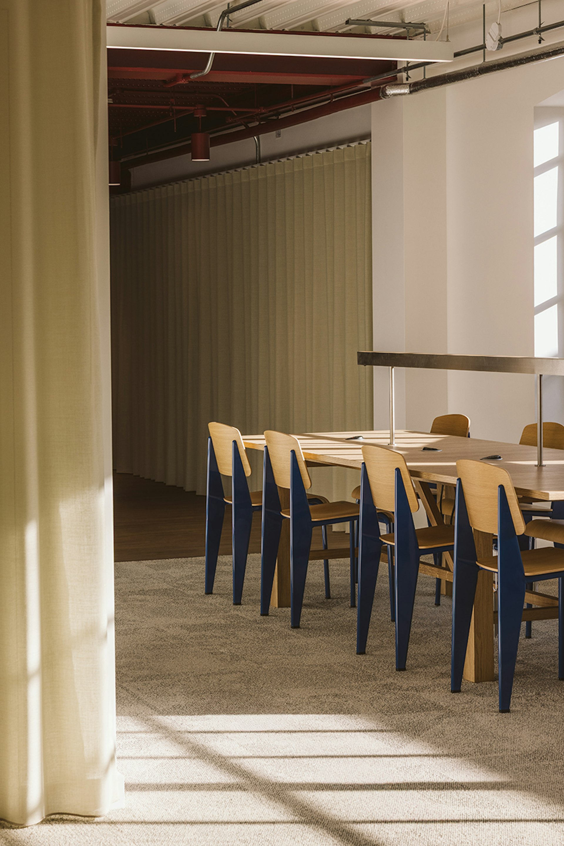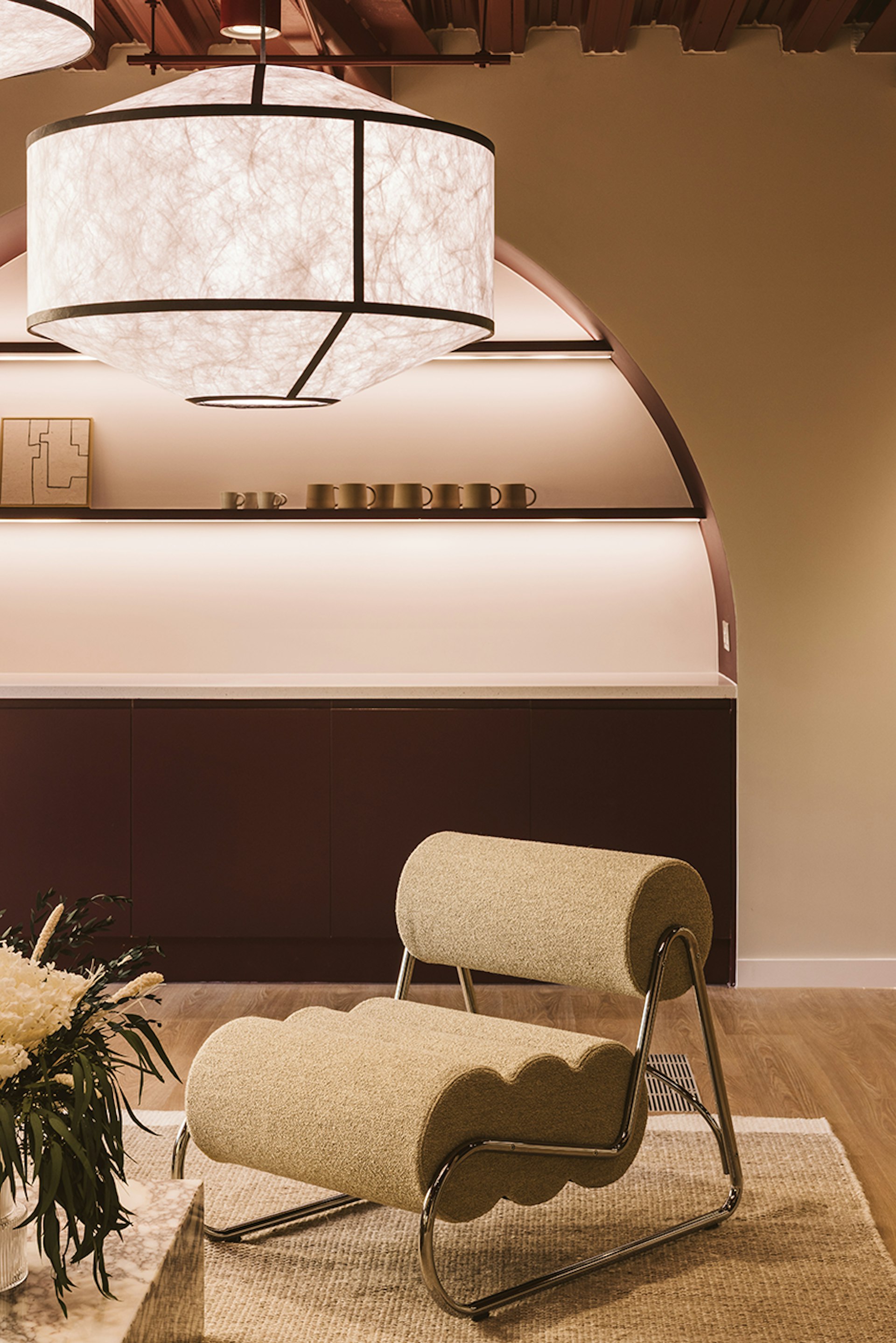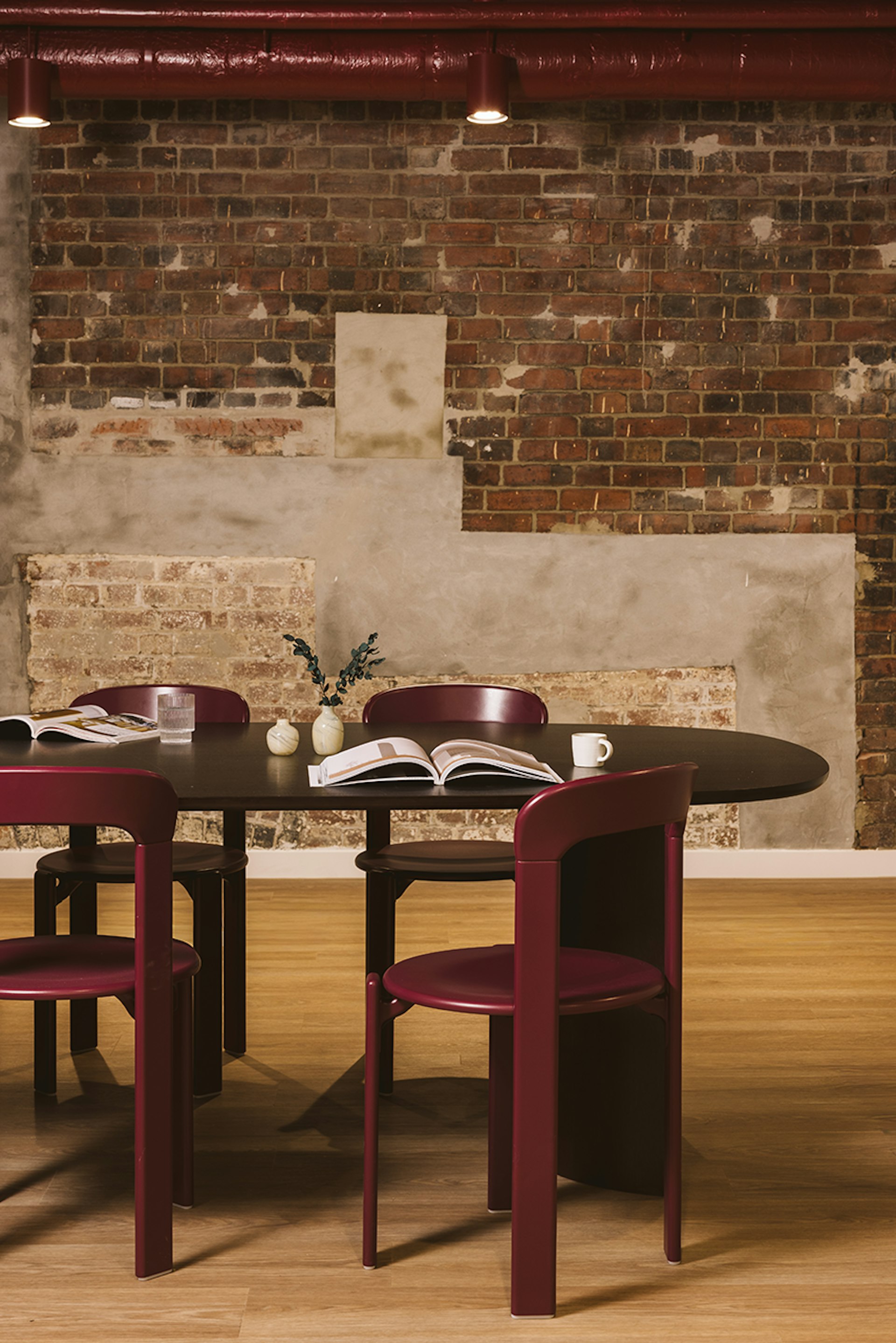 The design is underpinned by a focused and deliberate furniture selection that reinforces durability, robust but refined, aligning with the building’s character. Nothing feels excessive; each piece serves both an aesthetic and functional purpose.