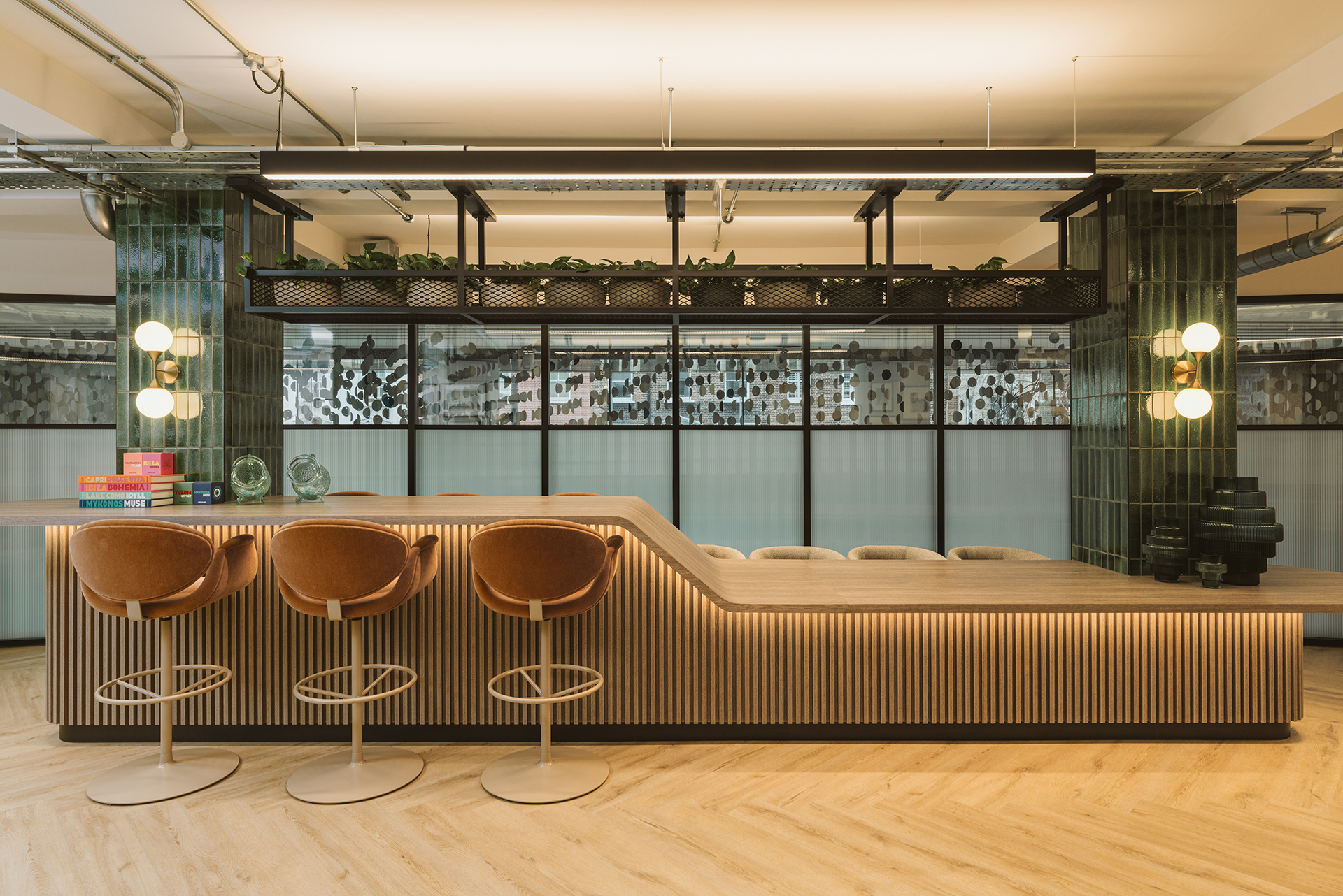 Fenwick pride themselves on creating bespoke and seamless user-experience for their clientele; we wanted to translate this same retail-led ethos and care into the office for their staff’s benefit. Part of this effort included creating varied working environments throughout the space, each catering to different methods of working and being considerate of neurodiversity requirements. A prime example being two break-out spaces next to the main desk area, a bank of higher desks and booth-seating – each catering to different working needs and preferences.