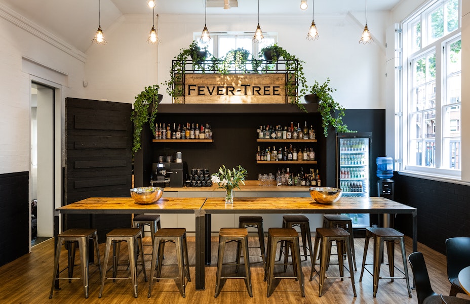 Fever-Tree’s flagship office feels like the company’s forever home. From the hand-lettered logo adorning a 10m scaffold board, to the sustainably styled pop-up bar, and an abundance of natural materials throughout, we’ll forgive you for thinking the brand has its roots in Hammersmith.