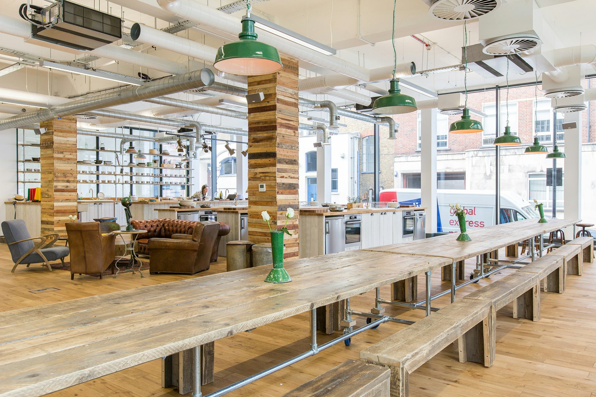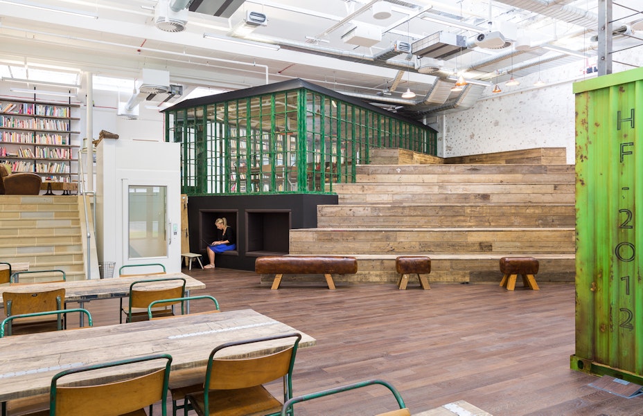 We love the HelloFresh, event-ready, demonstration kitchen, complete with spice walls, plenty of space for recipe-testing and even a raised kitchen for filming occasions. Not forgetting the HelloFresh branded green SMEG fridge, of course.