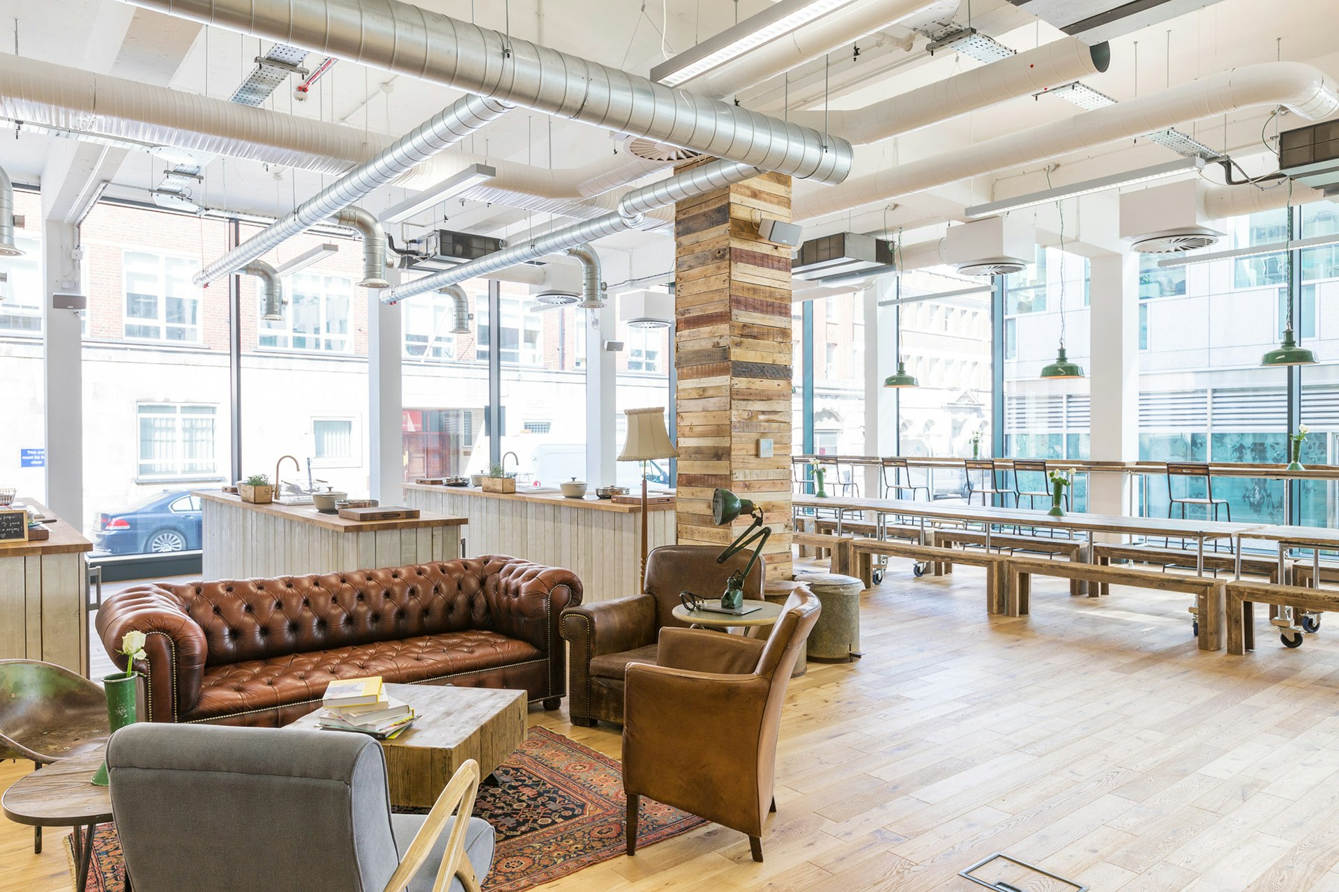 This space needed to become so much more than “just an office”- it needed to become a new home HelloFresh. With this in mind, no detail was left unconsidered. From eclectic furniture found in flea markets to palette wood applied to columns – the client team envisaged the space to reflect that of a farm, full of rustic and raw quirks, and exactly what we created.