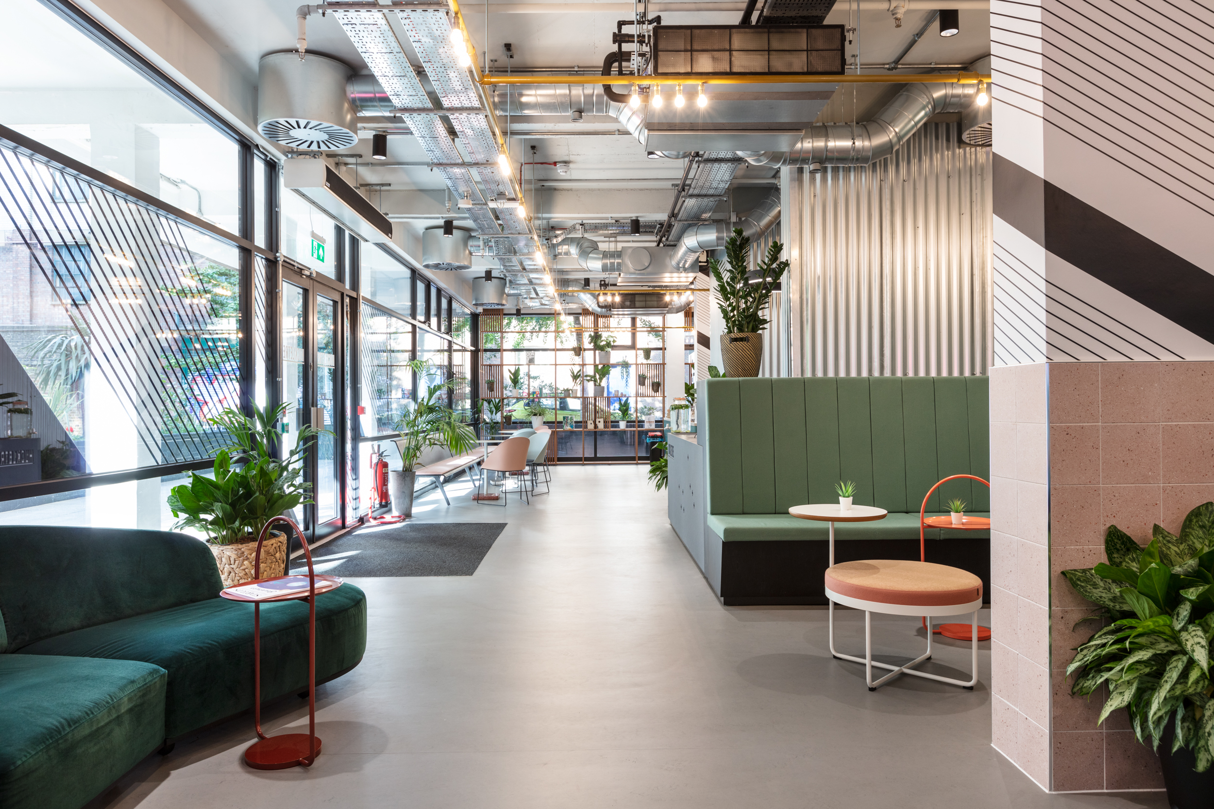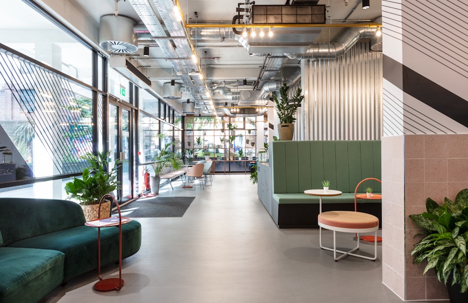 Only in Soho can you peek inside a Brutalist building and find a cohesive design aesthetic melding upscale art-deco, 70’s Miami and industrial elements. But there’s no better way to represent Huckletree’s co-working community.