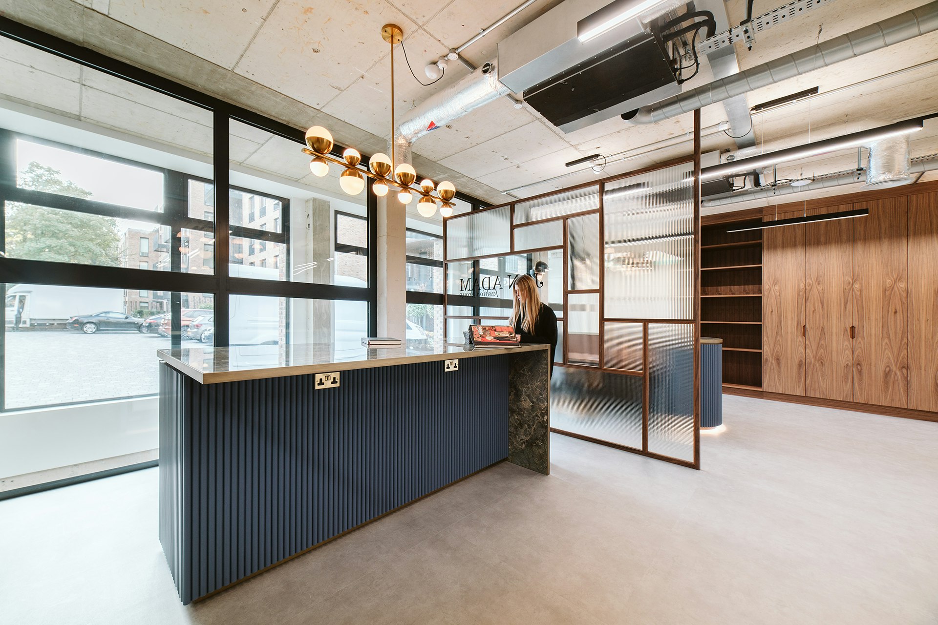 Enter the building and you could easily have stepped into a high-end fashion showroom in the West End. This is sophistication at its finest. You’re greeted with luxurious materials such as the marble surfaced worktops and reception desk, brass finishes and reeded glass. Something you’ll also notice is how bright and airy it is thanks to the large floor to ceiling windows bathing light throughout the space.