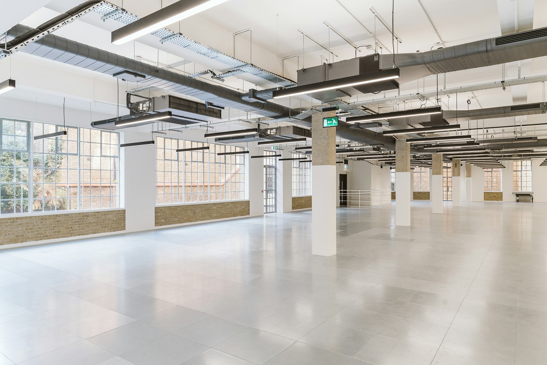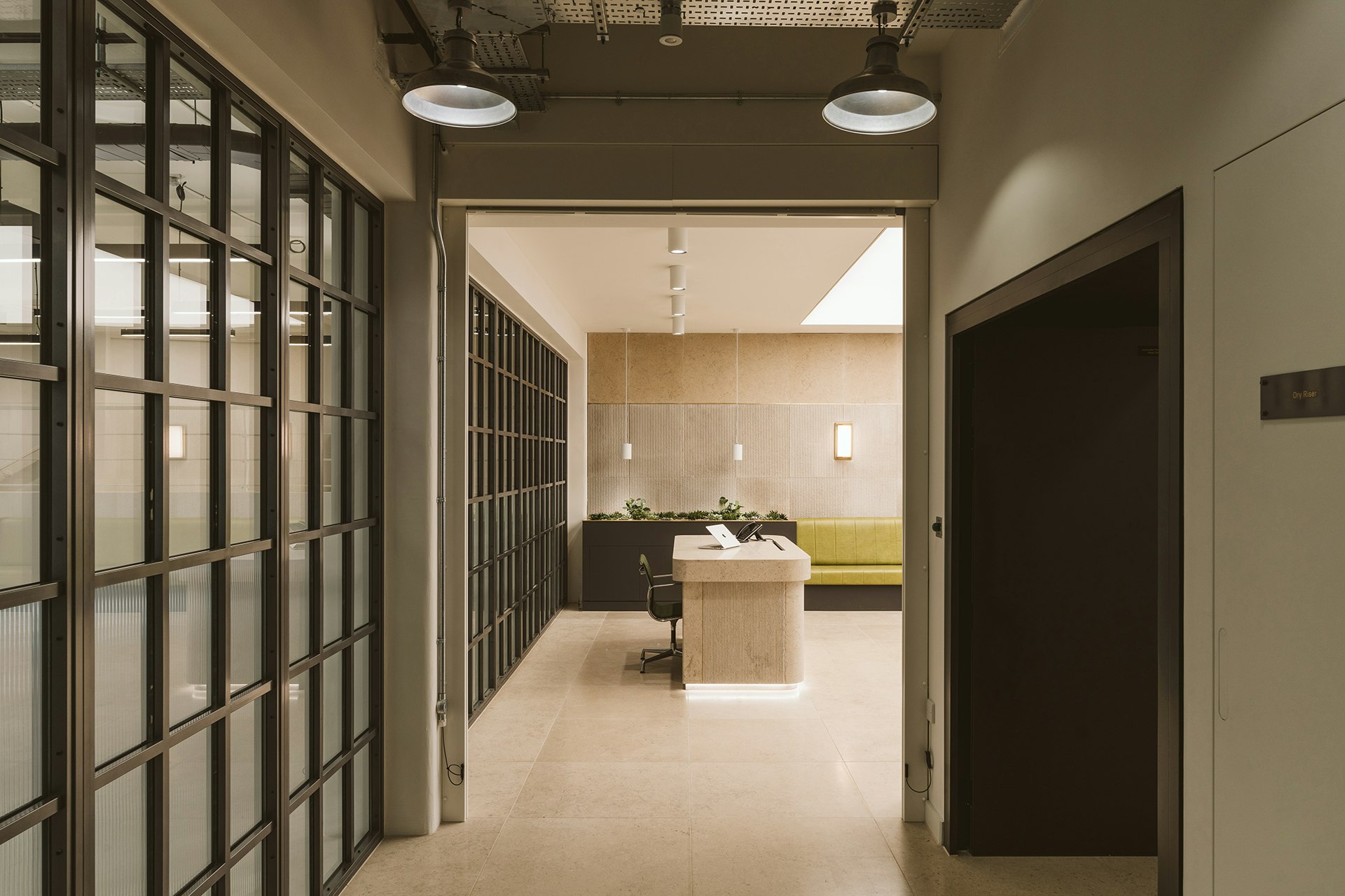 To inform our design process, we looked at the full history of the Derry Street site, spanning back to 1736 when the site was first built. Throughout its rich history, the site has served many purposes. For our design, however, we drew inspiration from its role in 1779 as a candle factory—an era that marked the beginning of the Industrial Revolution. Playing on this industrial heritage, our choice of materials remained true to this history—a key example being the exposed brickwork of the building throughout (a light coloured brick, reminiscent of London Stock Brick, a staple of the 1700s). As well as carrying an industrial feeling through to the interior of the building, the exposed brick adds warmth to the space, creating a more inviting environment. When paired with high-end finishes such as polished concrete, steel, and glass, the end product is a sophisticated and refined space.