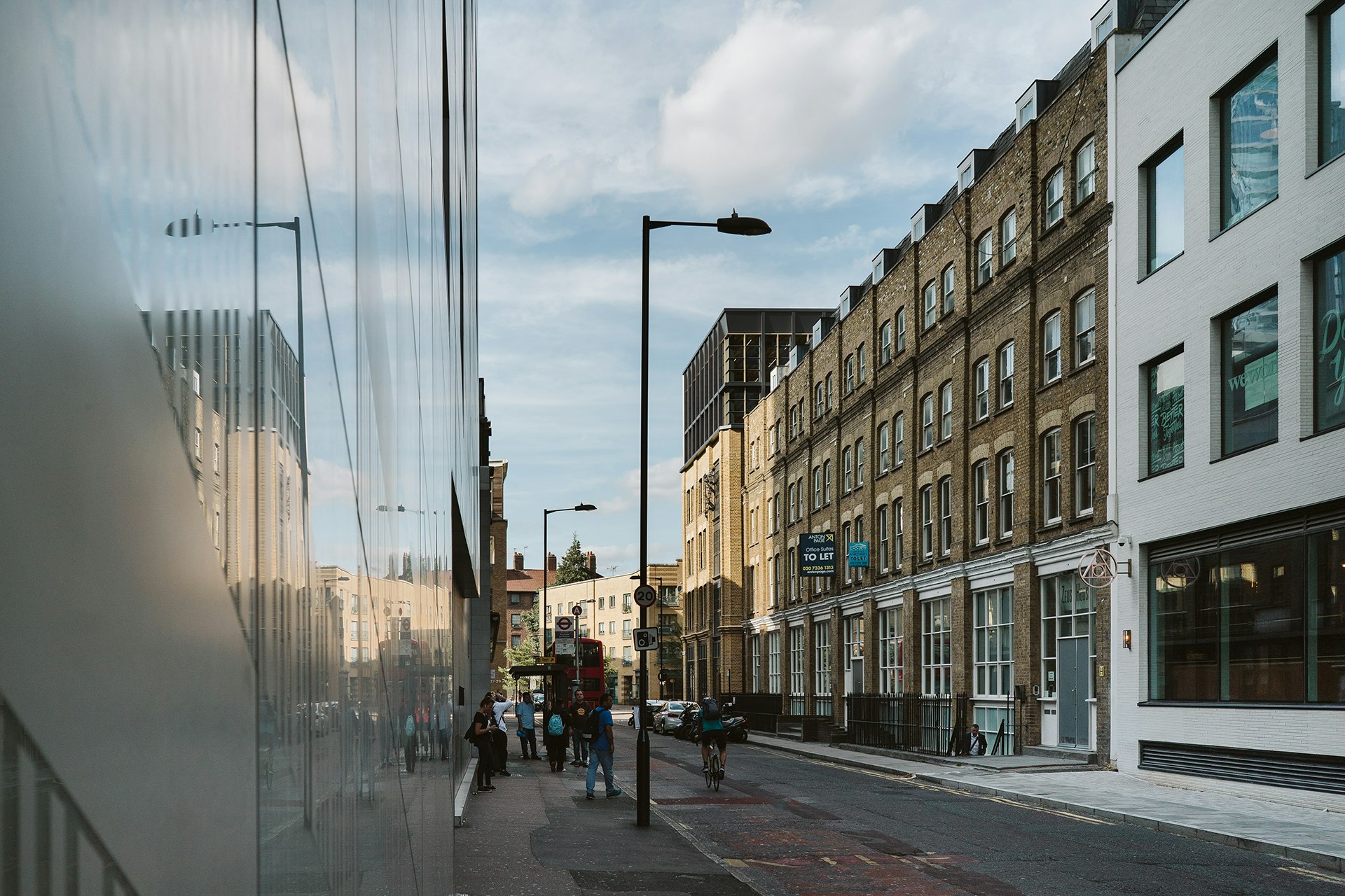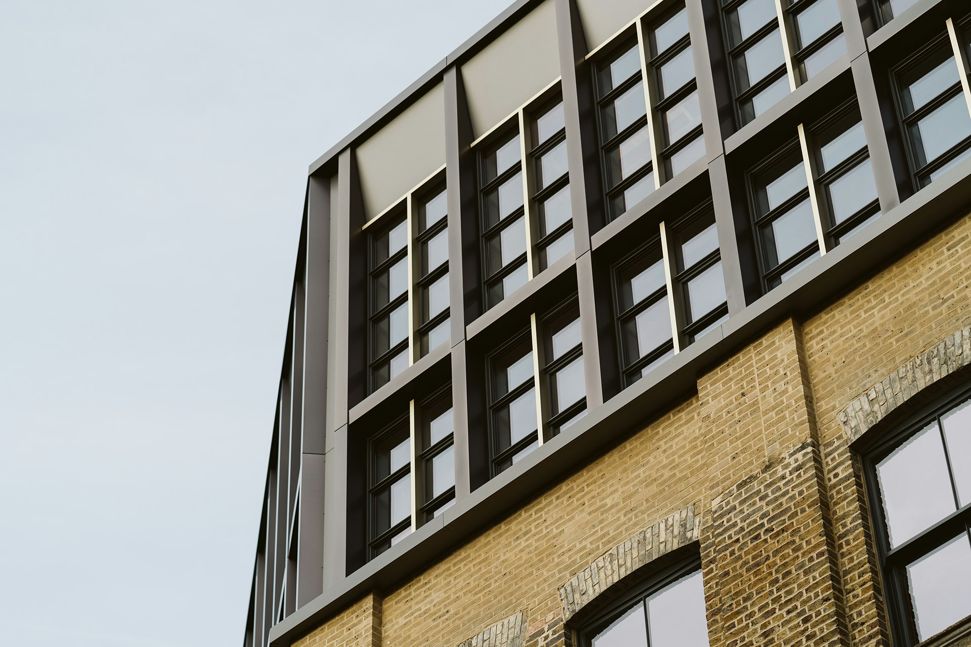 Provost Street’s façade transitions smoothly from refurbished Victorian brick to a modern extension clad in anodised metalwork and heritage-style glazing. The two new upper levels, floors 4 and 5, amplify the existing character with a contemporary update defined by recessed fins.