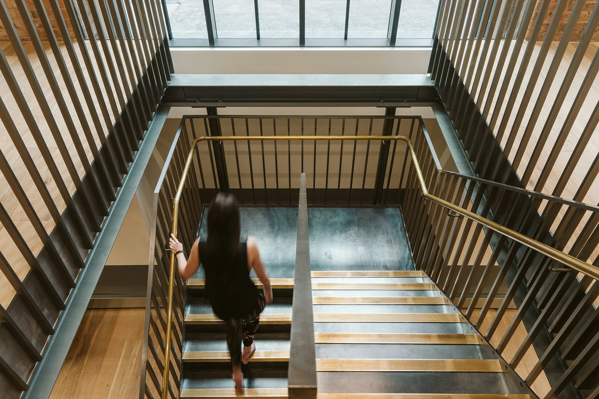Inside, the Victorian character again receives a 21st-century modernisation. Warm timber accents and contemporary lighting accent the central concrete and brick staircase serving the original floors, while a new metal staircase connecting the upper floors delicately contrasts the surrounding aesthetic.