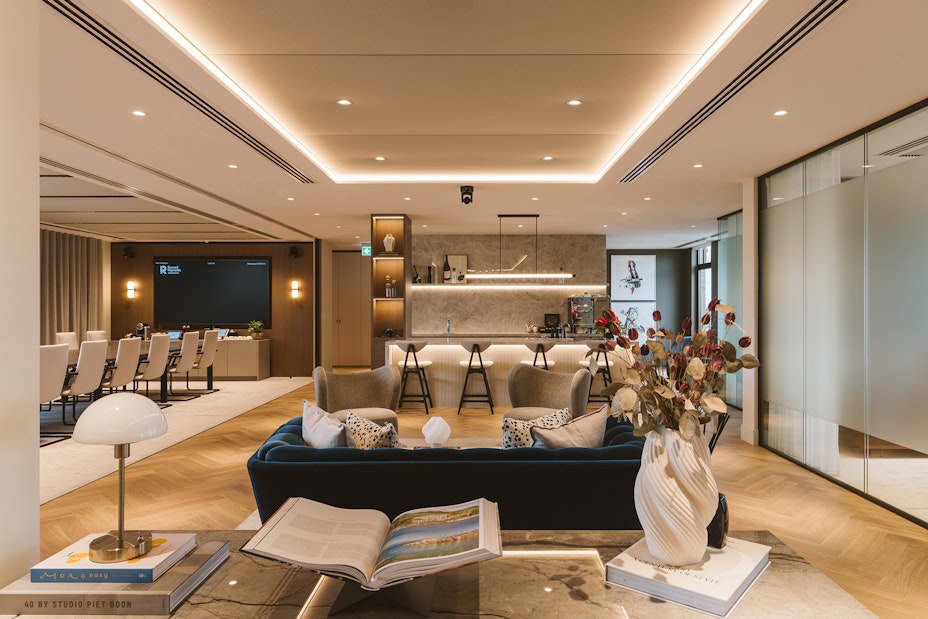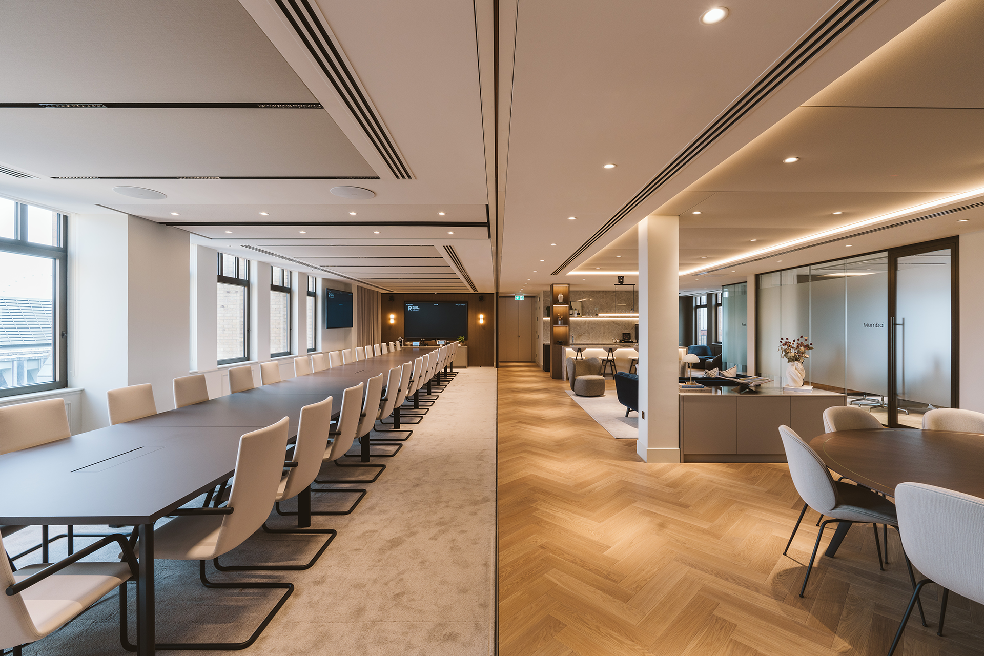 As well as this, the 34-person boardroom not only provides the perfect space to host large meetings for Russell Reynold’s Executive clients but, with the addition of mechanical bi-fold doors, allows these types of meetings to be integrated into the events space, meeting the goal of creating the perfect space for multi-functional hosting.