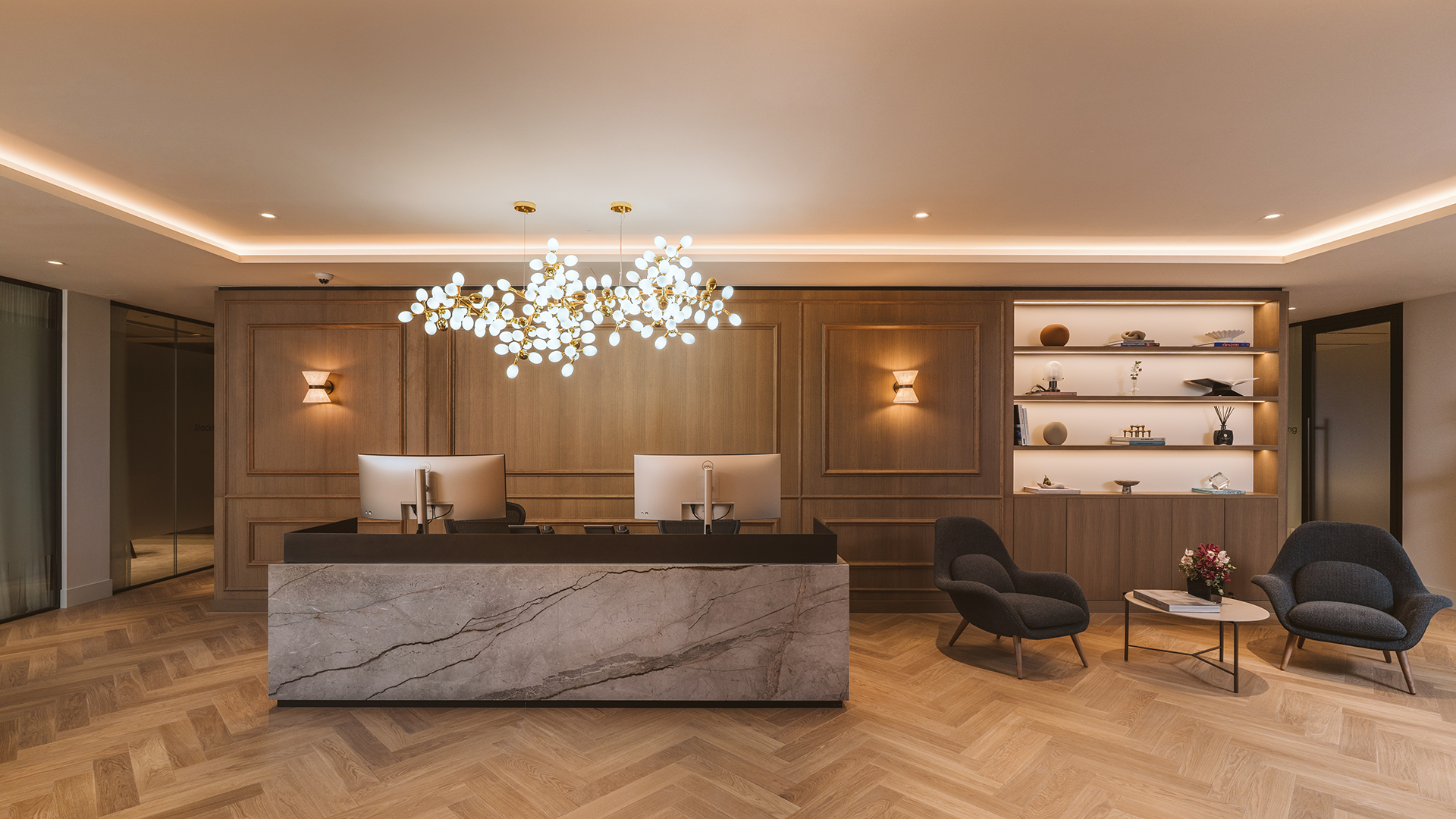 Ultimately, our scheme for Russell Reynolds’ space blends high-end office design with the best of hospitality, delivering a best-in-class space, and gives Russell Reynolds the perfect space to provide a first-class experience for their clients. Across both floors, our design has considered the different types of users of the spac,e ensuring that the workspace, while aesthetically beautiful, prioritises functionality and flexibility.
