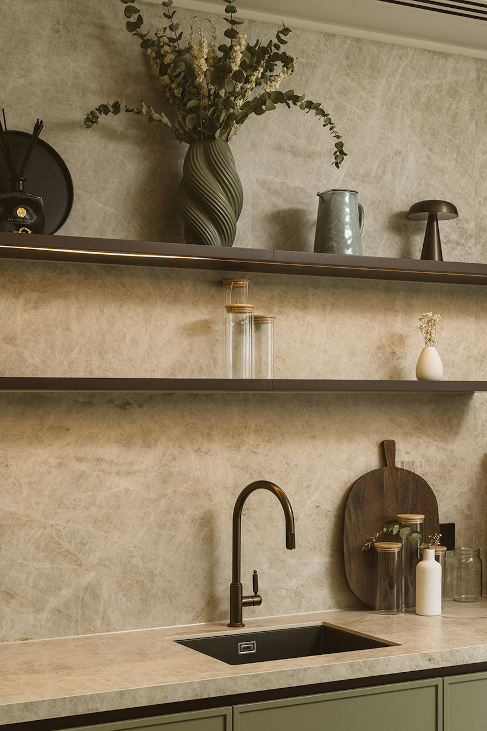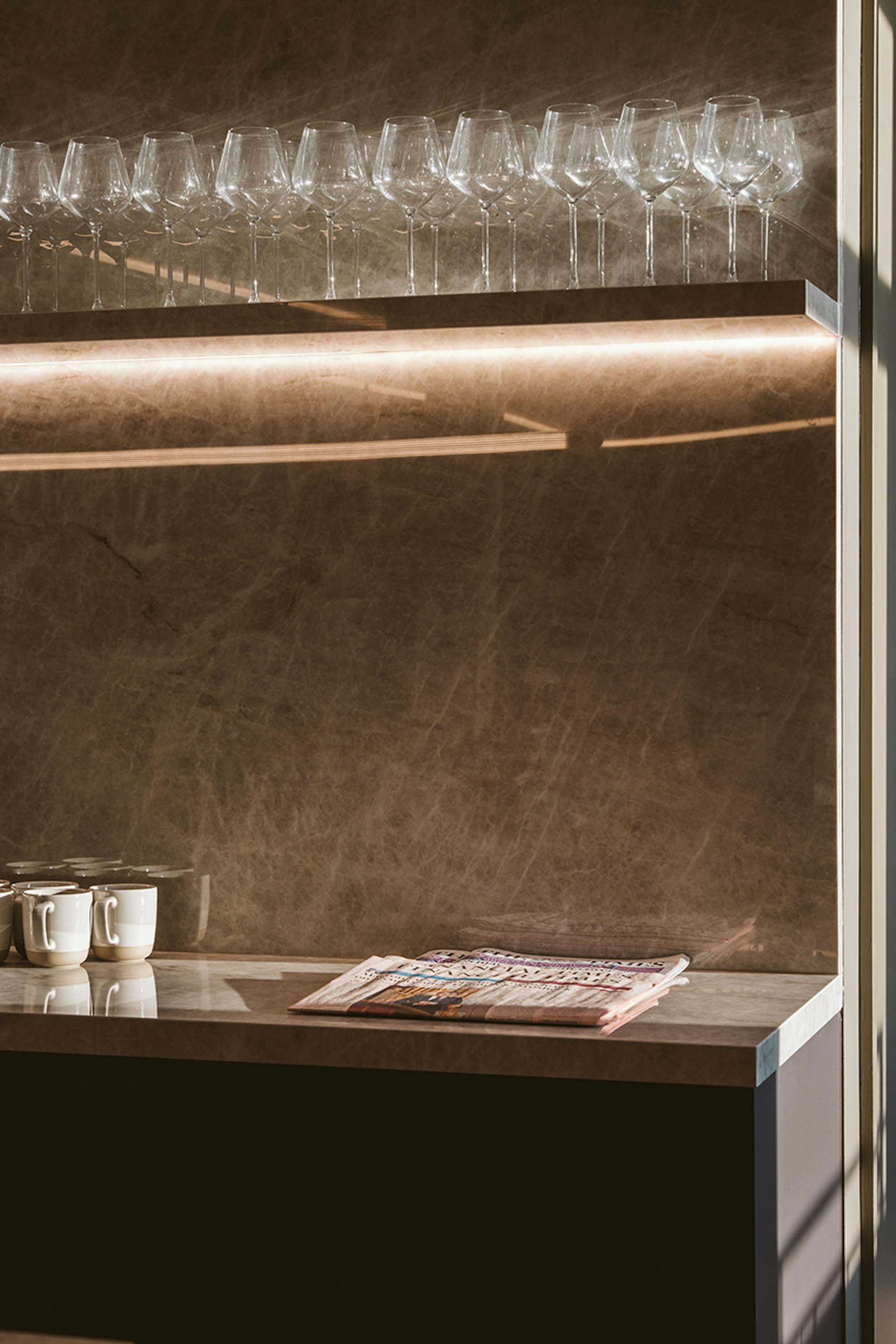 Alongside this, we discretely mirrored the design of the third-floor tea point and that of the seventh floor, creating a seamless link between both floors – this is most evident in our use of the same Marazzi porcelain, and the harmonising furniture pieces throughout. These shared design elements ensure that both floors feel connected, and although used for different purposes, reinforce the Russell Reynolds ‘style, while remaining distinct from each other.