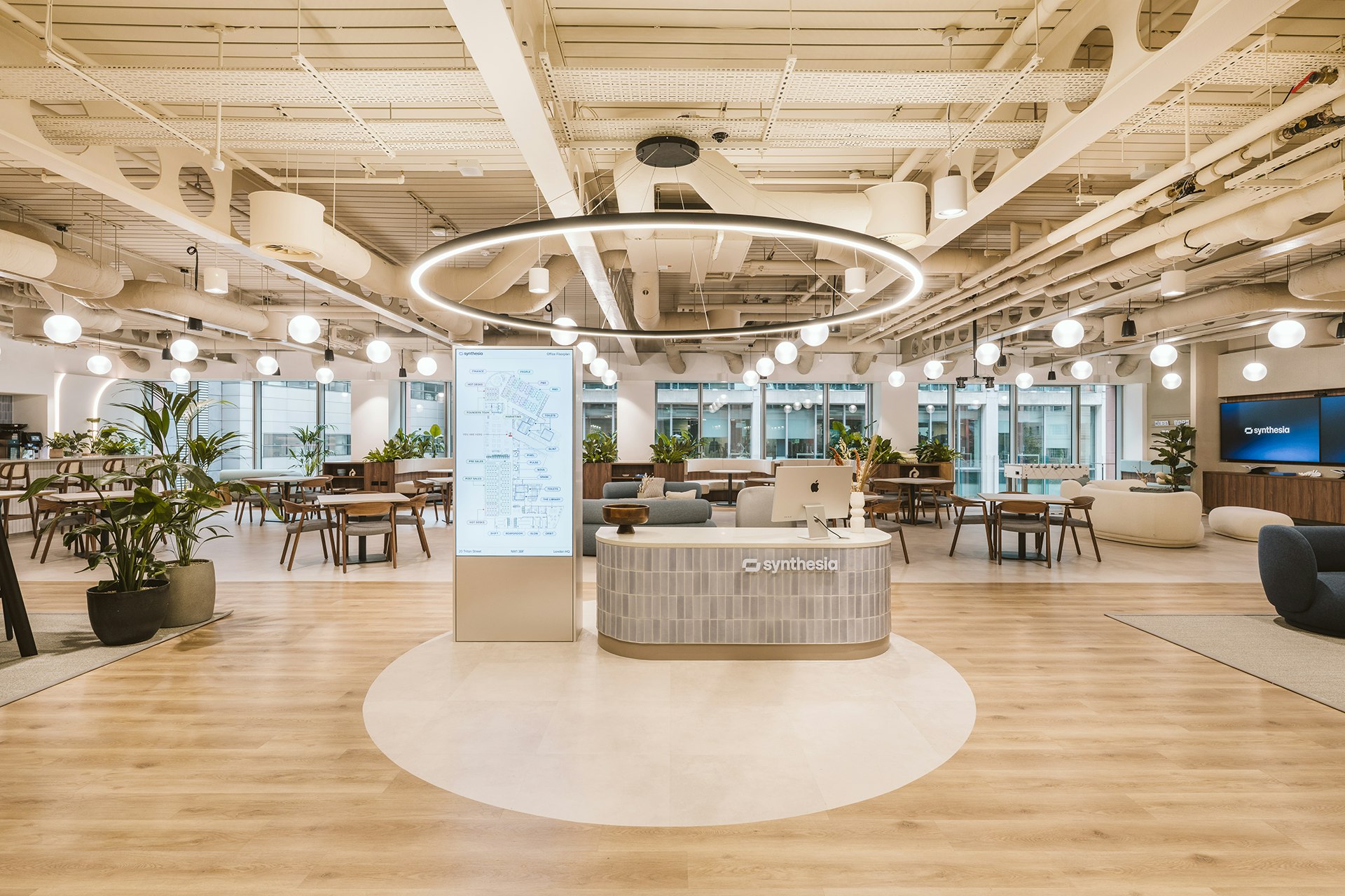 Synthesia’s new 20,000 sq ft London headquarters is located at Regent’s Place, in the heart of the city’s ‘Knowledge Quarter’. With Synthesia’s rapid growth, our design channelled that into a workspace that reflects the brand’s values and goals, cementing their reputation as a global AI leader.