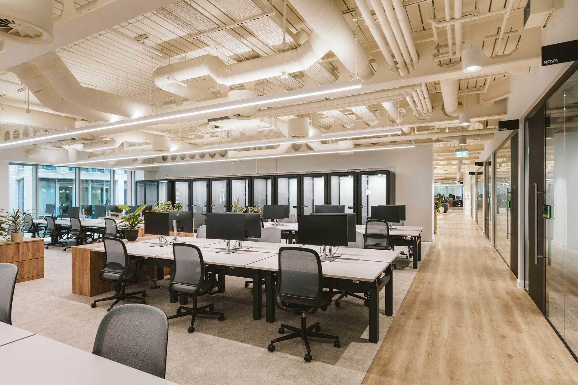 In the naming strategy of each meeting room, we incorporated Synthesia’s innovative and progressive company culture, opting for names such as ‘Pulse’, ‘Nova’ and ‘Spark’, evoking a futuristic and forward-thinking feeling; ultimately solidifying Synthesia’s brand ethos in a subtle way that is still true to the brand and company.