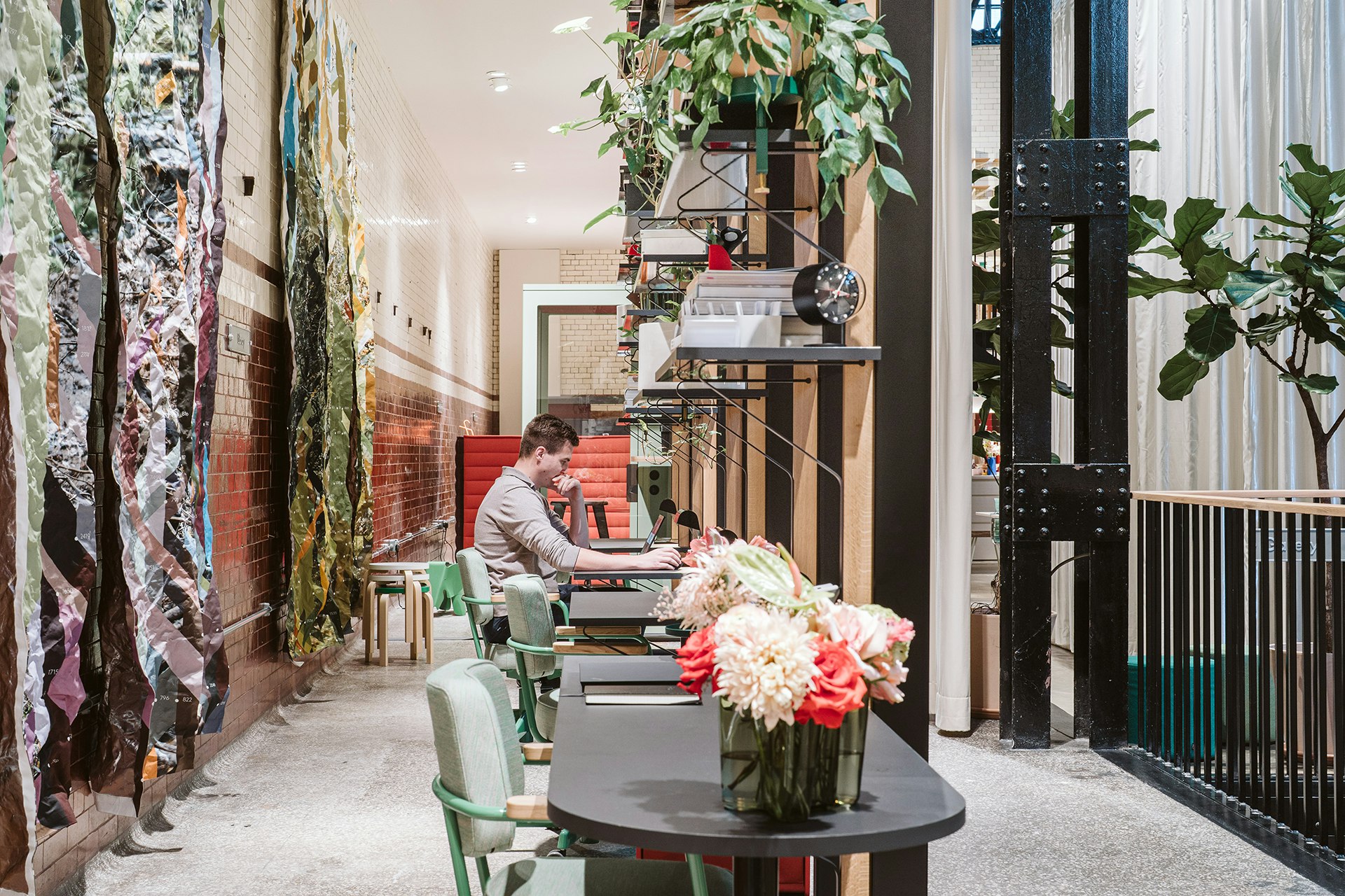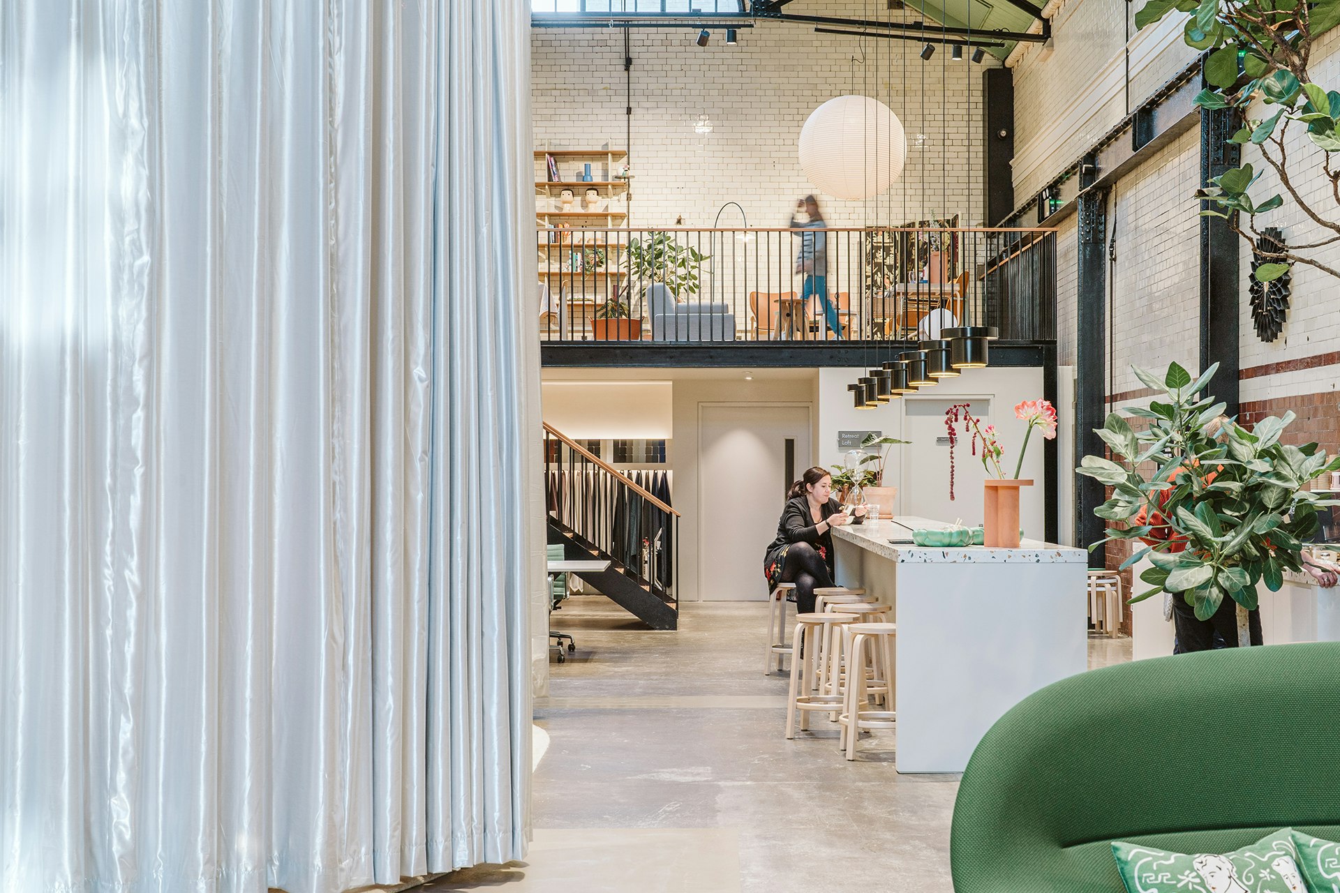 This crisp and clean space is transformed by the addition of colour that it now displays, ensuring that designers work remains centre stage in this vast area.