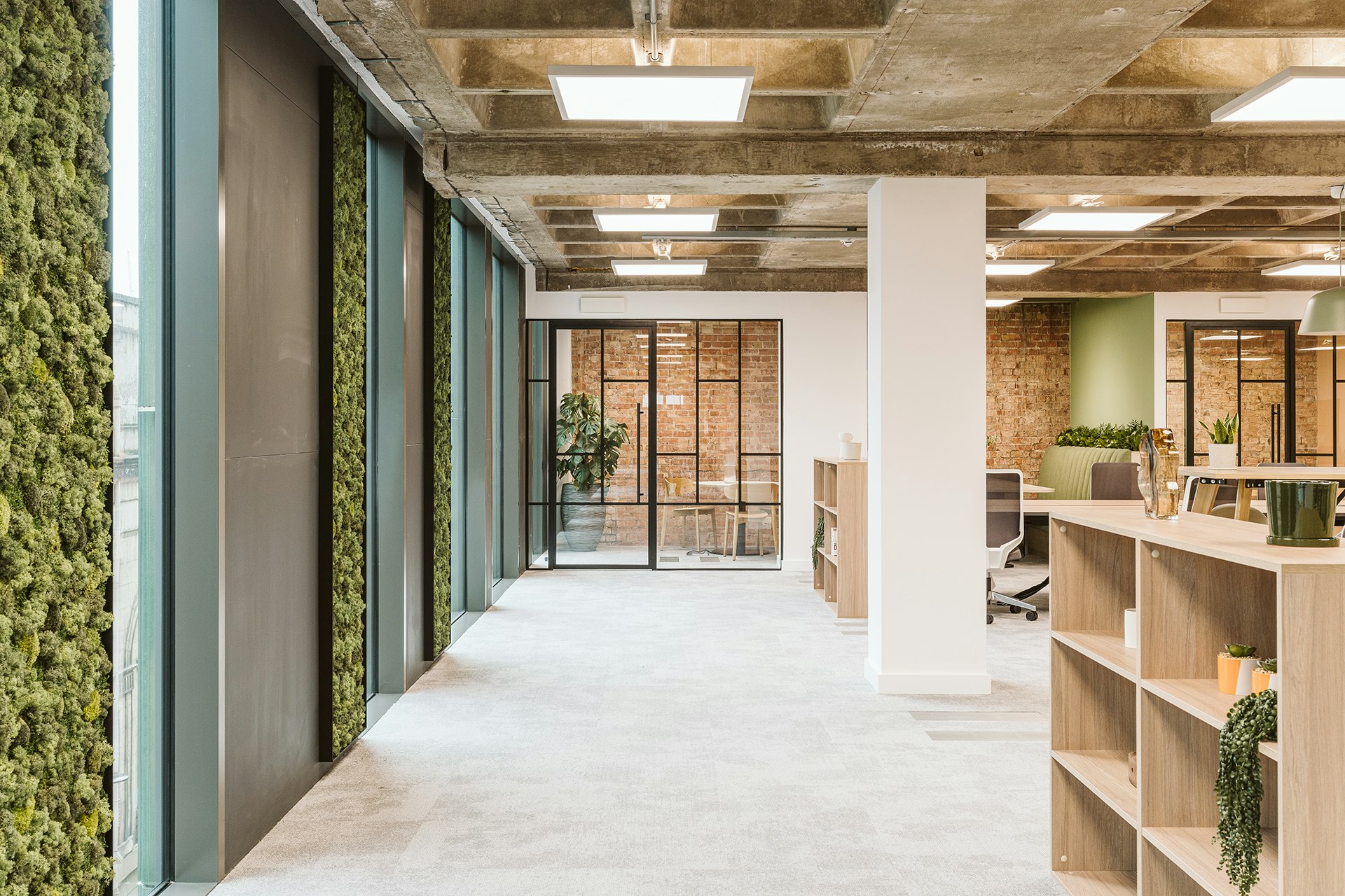 Moss walls are not only fantastic for the wellbeing of tenants for a multitude of reasons, they’re also environmentally friendly as they improve energy efficiency through a process called evapotranspiration. Through evapotranspiration, moss walls help to cool buildings during warm summer months and in the winter, the moss benefits the space by adding an extra layer of insulation which in turn reduces overall energy consumption. Over time, the preserved moss will also help reduce the spaces’ carbon footprint, contributing to a more sustainable workplace.
