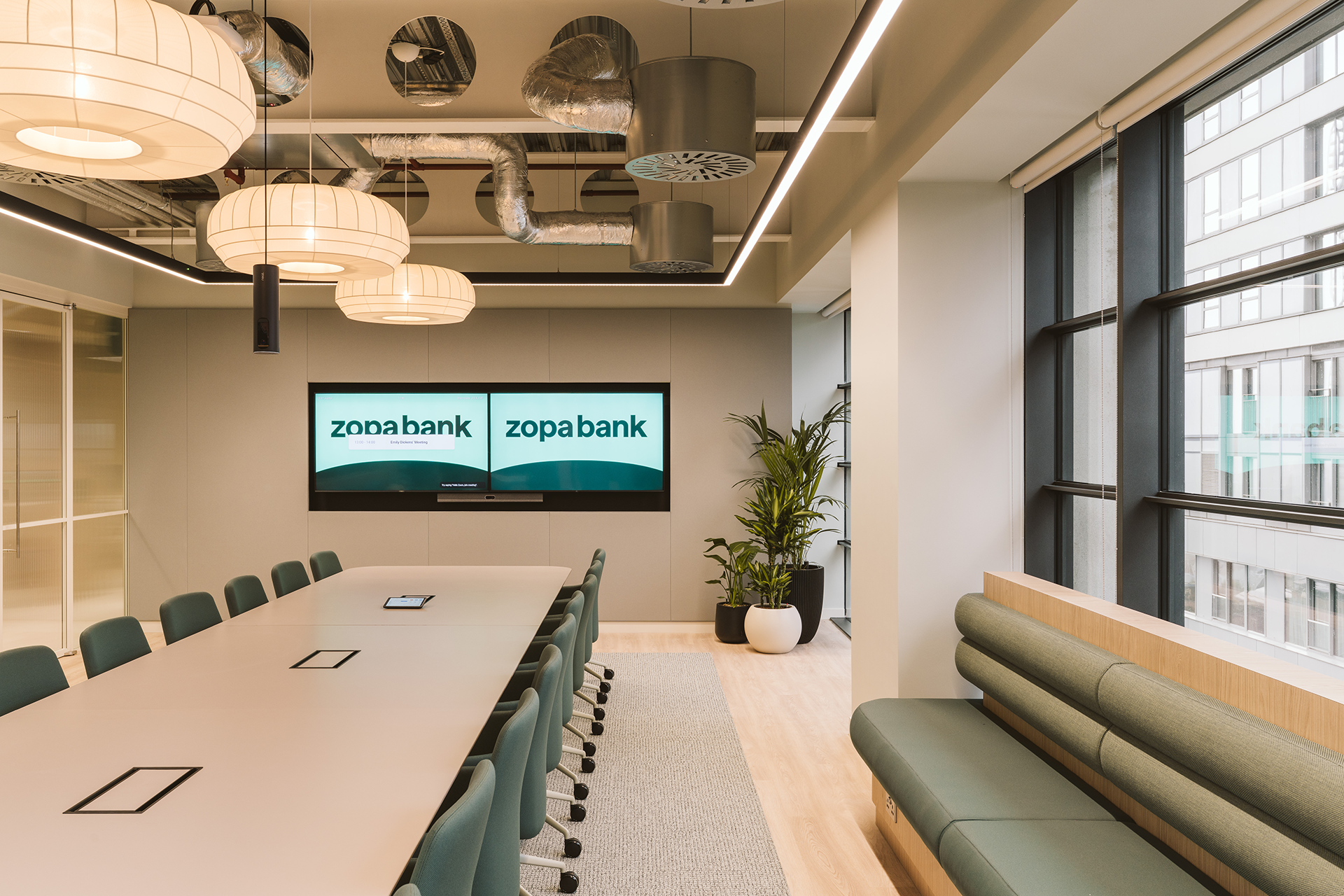 In designing this space for Zopa, we thoughtfully blended timeless, heritage-inspired aesthetics with sleek, contemporary touches, celebrating Zopa’s unique identity while embracing the evolving needs of a modern tech hub. Every detail was carefully considered, from elegant finishes and bespoke furnishings to curated brand moments that subtly nod to Zopa’s fintech roots.